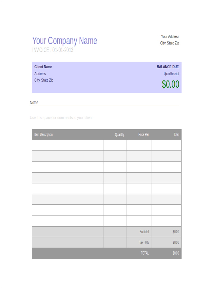 This free simple invoice template is for small businesses that bill customers/clients for services rendered and don't have to charge taxes.